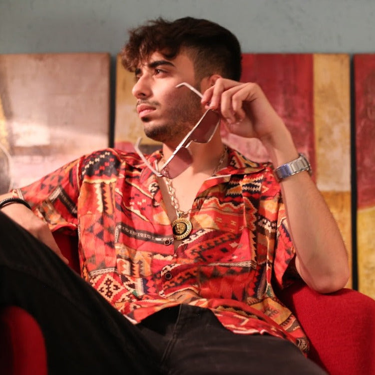 The "Folklore Fabric Shirt" embodies the mystique of tales told by the fireside, its patterns reminiscent of the vibrant storytelling that forms the fabric of cultural identity. It’s designed for the bearer of myth and the weaver of modern tales, interlacing the threads of yesterday with the fibers of now.